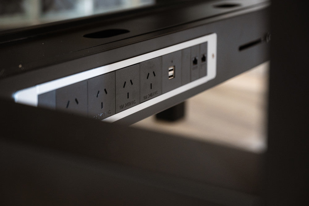 - Includes 4x GPO / 2x USB-A Power & 2x CAT6 slots below desk