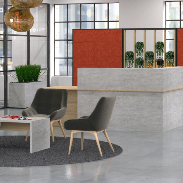 This Block Reception Counter has been constructed with sturdy materials and finished in a durable melamine. Available in Classic Oak and Elemental Concrete, the counter also includes an extended section on the side to provide wheelchair access.