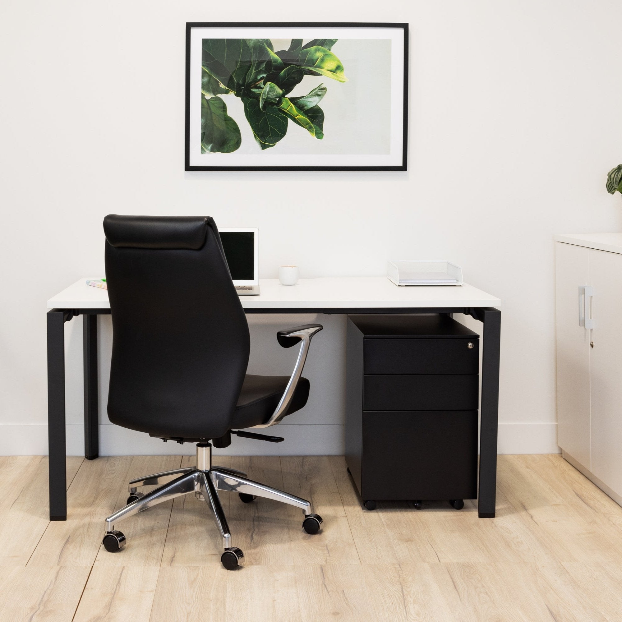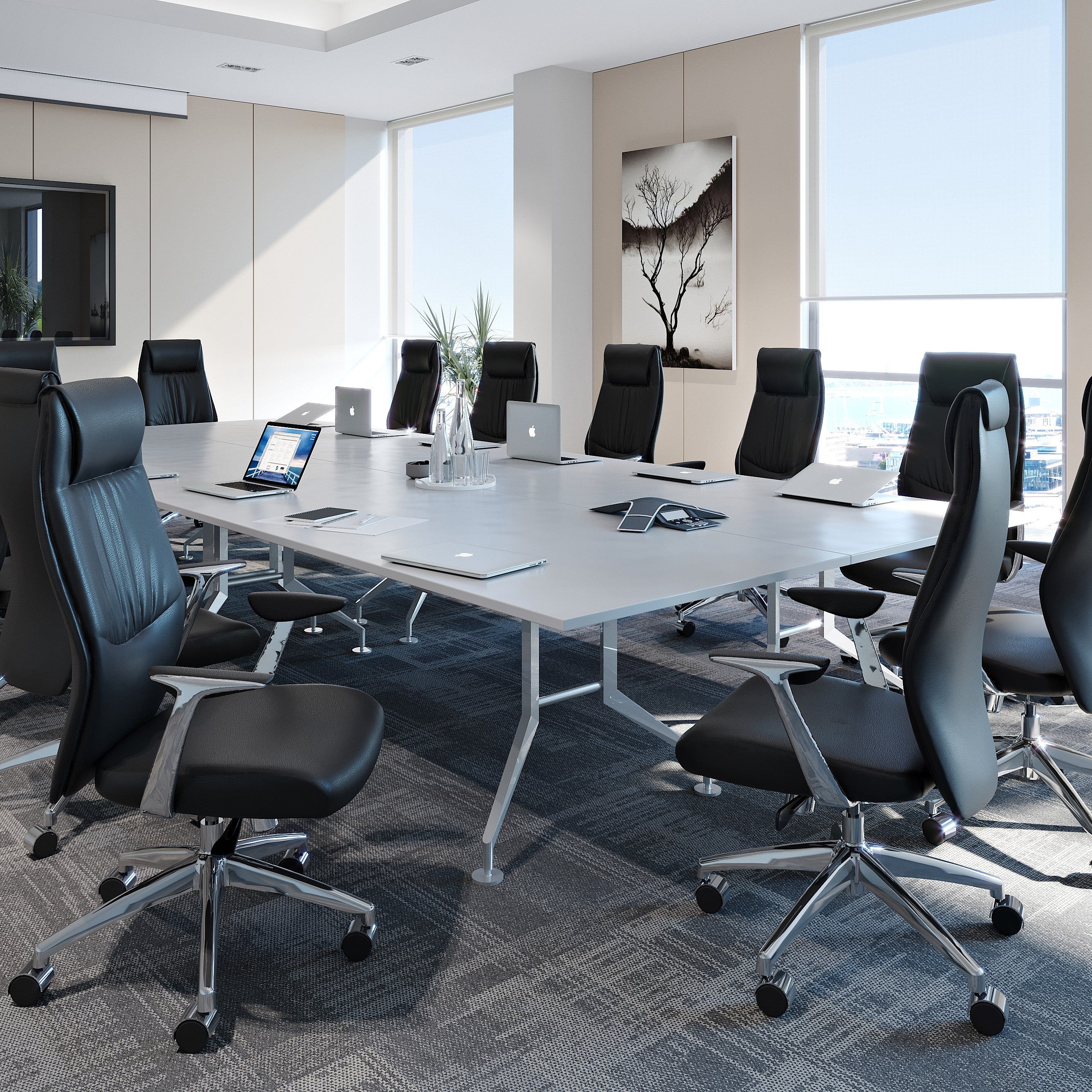 The Eden Domain Black Leather Chair offers modern functionality and timeless style for elegant boardroom seating. With a choice of two backrest heights, high comfort cushioning, and tailored upholstery, this chair provides exceptional comfort and support. Its sleek polished aluminium armrests and base add a touch of sophistication, while the supportive synchro mechanism ensures smooth movement. Upholstered in a refined combination of genuine leather and leather-look material, the Domain chair is the perfect addition to any professional setting.