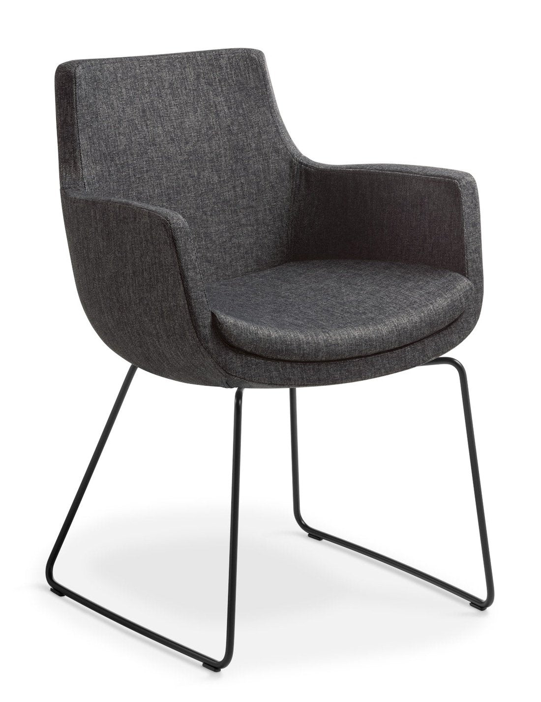 The Eden Ferne Chair is an elegant seating solution for any workplace. Featuring a heavy-duty moulded foam shell with generous shaping and tailored upholstery finishing, it is built on a sturdy steel rod sled base for reliable support. Available in your choice of black or chrome base colours and a wide range of upholstery options, the Ferne Chair is a durable choice for any office.