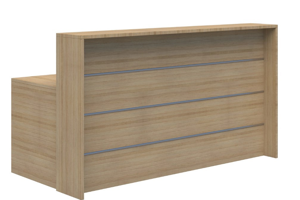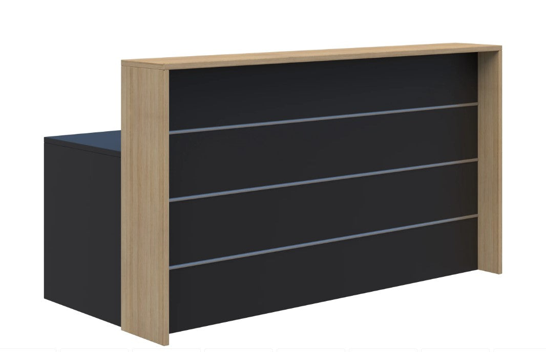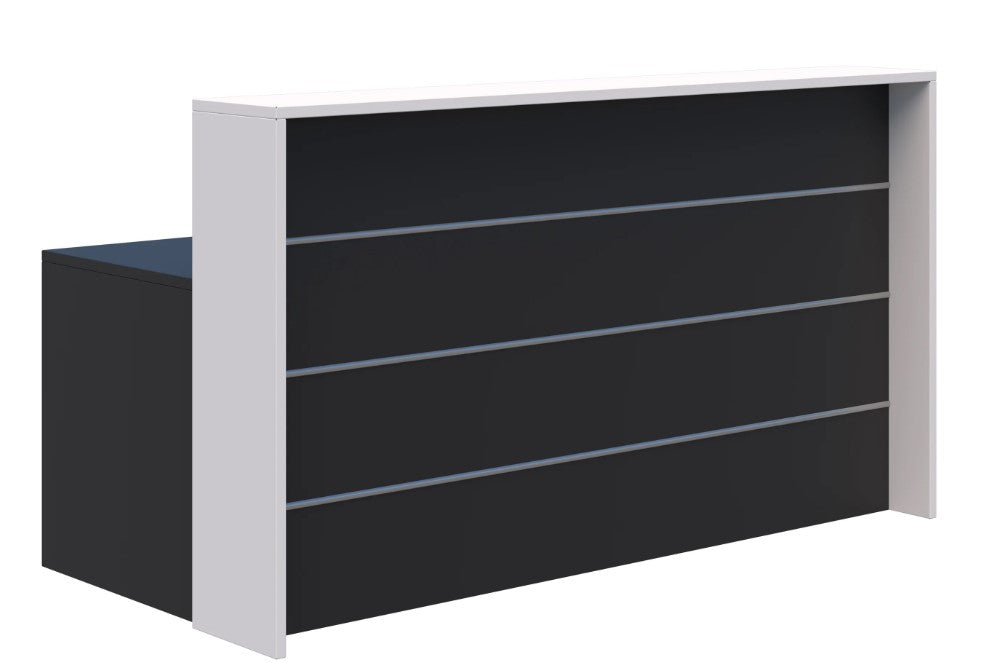 Upgrade your reception area with the professional and stylish Euro I Reception Counter. Its sturdy and durable construction, coupled with decorative aluminium strips on the front for a modern touch to your space. Get yours today and elevate your reception area with this sleek piece of furniture.