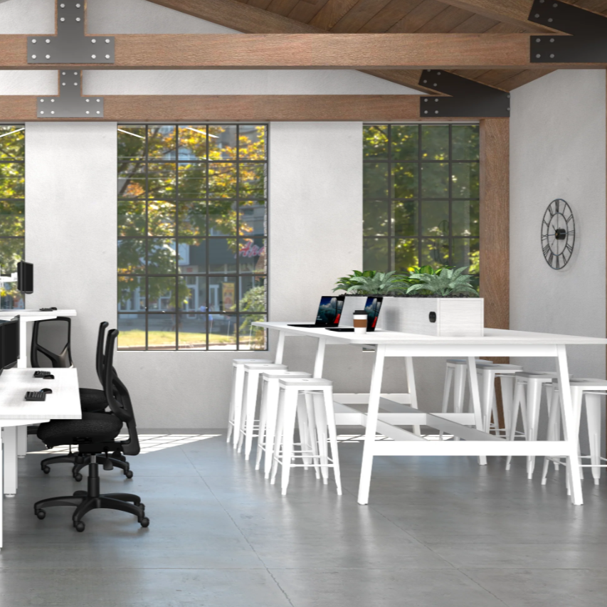 The Modella range is an industrial styled family of tables, leaners, and coffee tables which are are perfect for meetings rooms, collaboration zones and lunch areas.