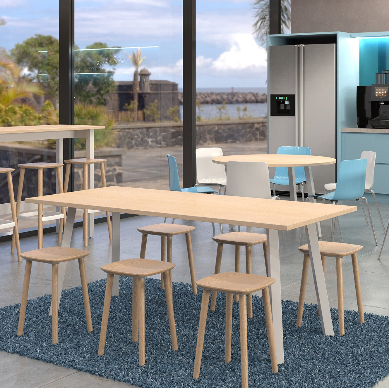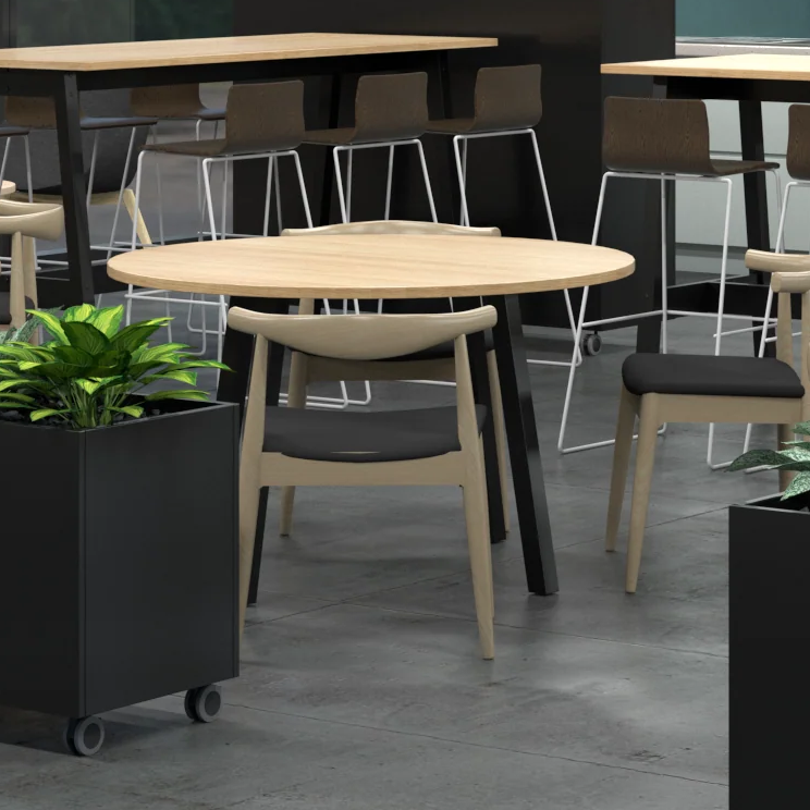 The Modella range is an industrial styled family of tables, leaners, and coffee tables which are are perfect for meetings rooms, collaboration zones and lunch areas.