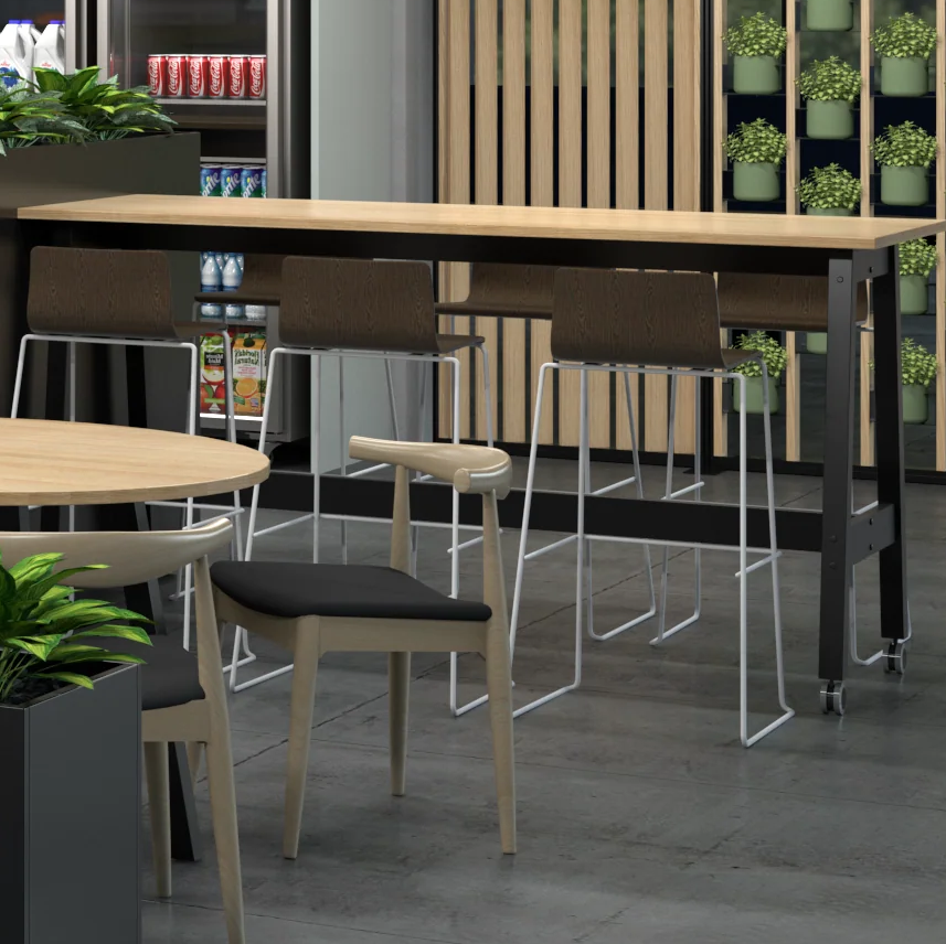 The Modella range is an industrial styled family of tables, leaners, and coffee tables which are are perfect for meetings rooms, collaboration zones and lunch areas.