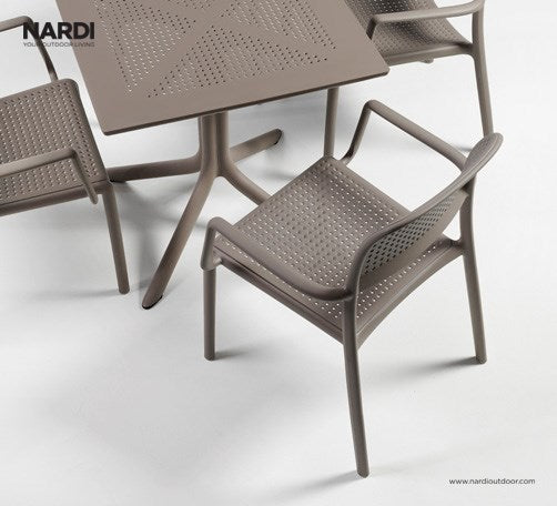 Especially designed to take up very little space, Clip is a professional single pedestal square table in Polypropylene & Fibreglass resin with UV additives, matt finish and adjustable height feet.