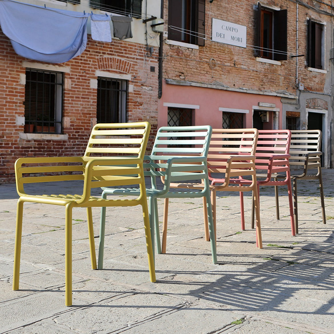 Open your space to contemporary Italian design with the Doga Armchair. Italian made with commercial grade polypropylene & fiberglass resin that’s UV treated. The Doga is stackable, with non-slip feet. Easy to clean, and 100% recyclable.