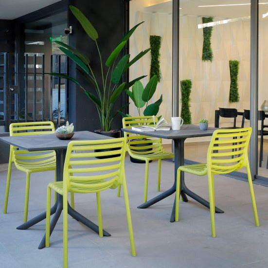 Open your space to contemporary Italian design with the Doga Bistro Chair. Italian made with commercial grade polypropylene & fiberglass resin that’s UV treated. The Doga is stackable, with non-slip feet. Easy to clean, and 100% recyclable.