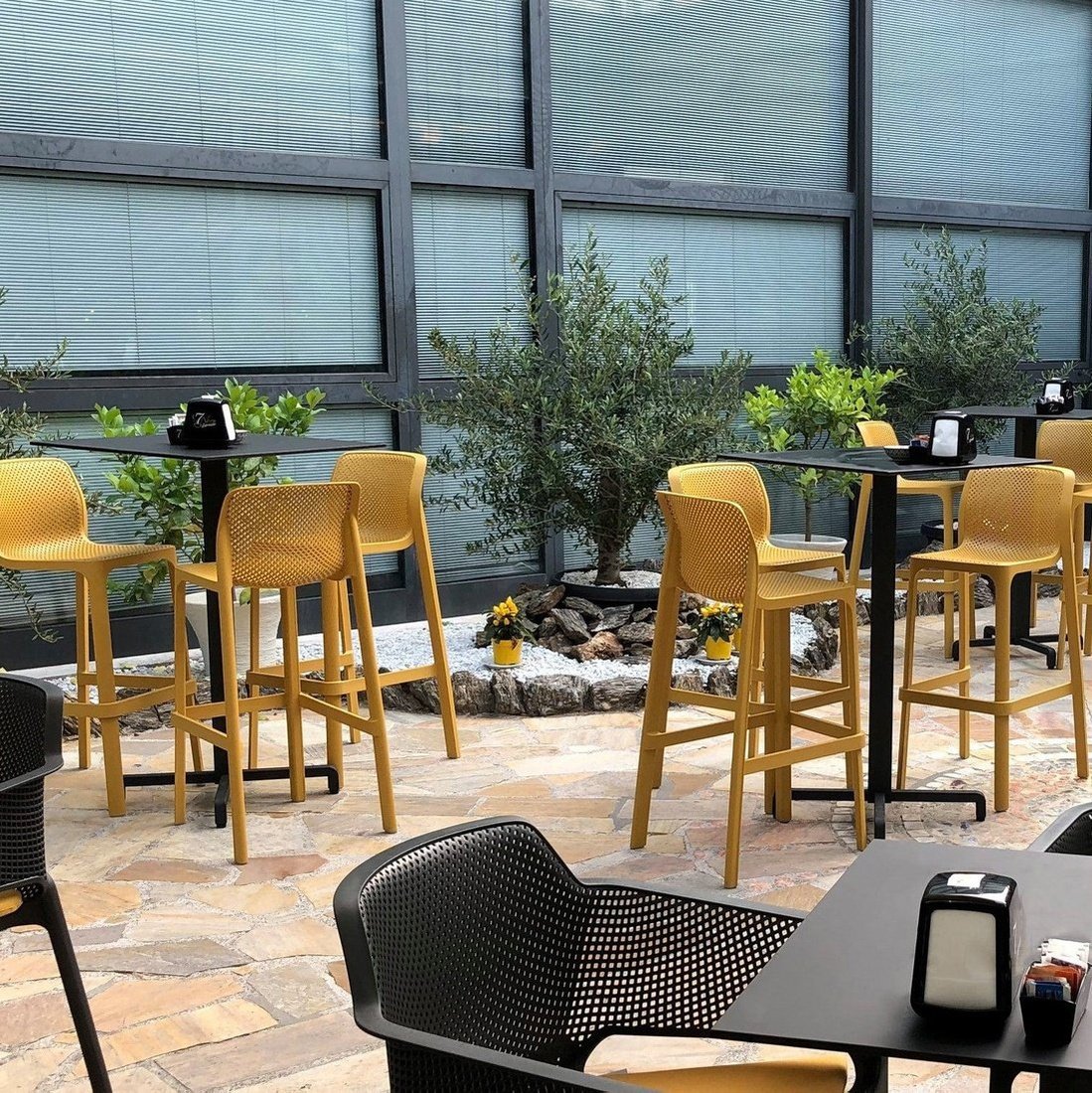 Made and designed in Italy, the Net bar stool is suitable for both outdoor and indoor spaces. The Net bar stool is fibre-glass resin infused polycarbonate painstakingly punched with a pattern of square and rounded slots, which added a lovely transparency and lightness to the chairs design. Designed with a comfortable shape, generous arm rests, and a lovely colour palette. The Net bar stool will work in a variety of your work / outdoor environments.