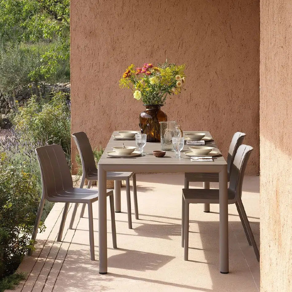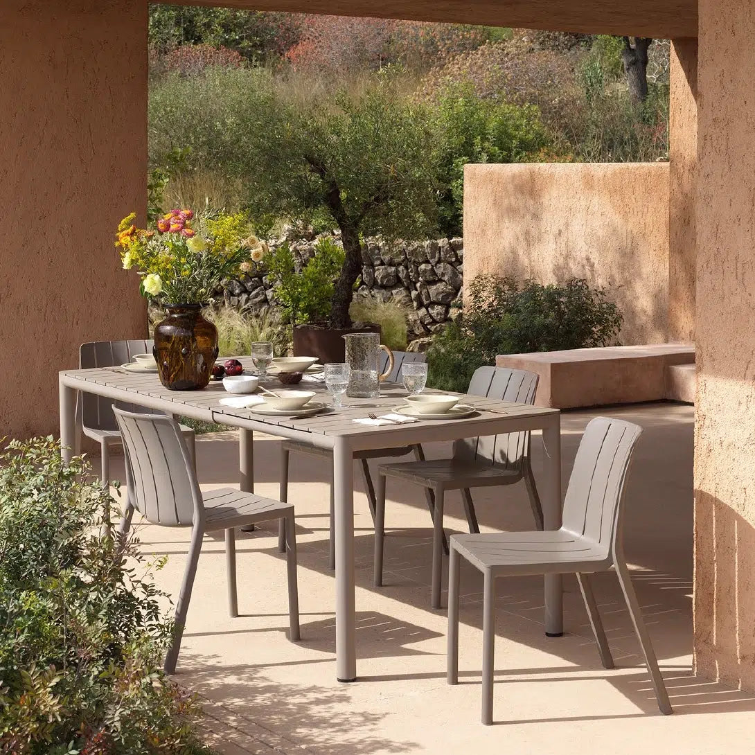 The Tevere boasts a beautiful design and extendable functionality, suitable for 8-10 people. Designed & made in Italy by NARDI Outdoor. The Tevere's non-slip, adjustable feet and UV/moisture resistance make it perfect for outdoor use. Its construction is 100% recyclable and non-toxic.