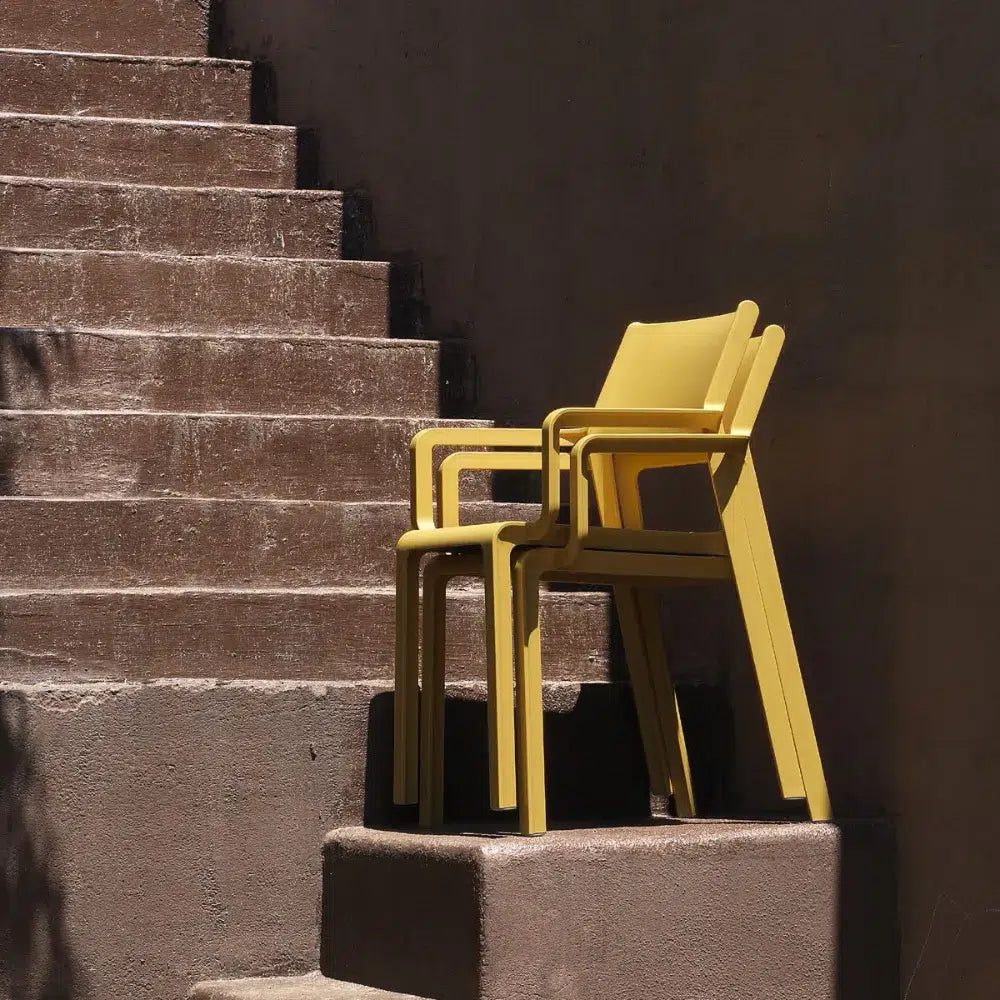 The Trill range has a lovely colour palette and comes with matching chairs, armchairs and barstools. Designed and made in Italy by Raffaello Galiotto, the range is stackable and comfortable with an elegant silhouette.