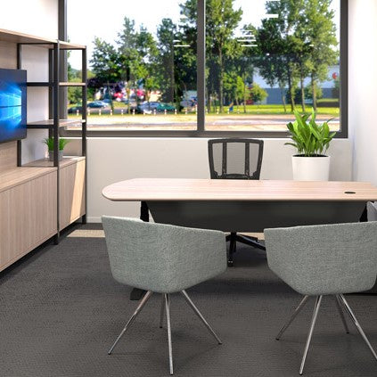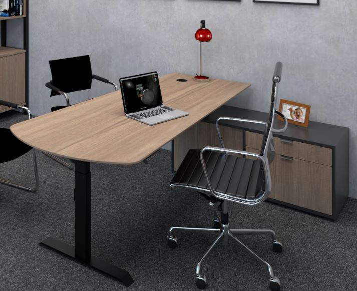 The Pintari Executive Desk comes with a built-in credenza with push door handles, styled in two tone New Zealand Melteca with a modesty panel and unique trapezium shaped top. It also brings with it a commercial grade electric desk motor with a 15-year warranty and 140KG weight rating.