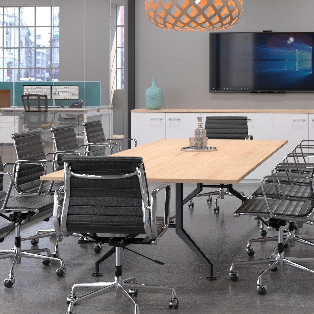 This flexible and refined board table offers quality construction and durable materials to add style to any office setting.